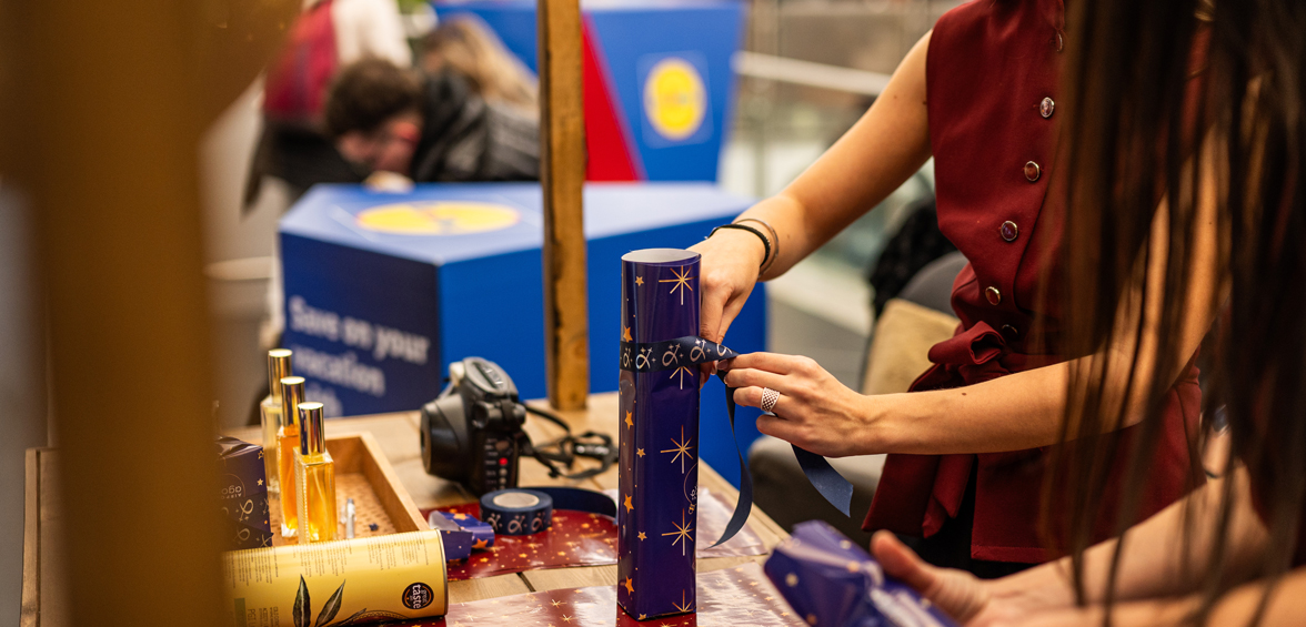 Οι ταξιδιώτες του αεροδρομίου από τις 22/12 έως 02/01 - 09:00 με 17:00 θα έχουν τη δυνατότητα να προσφέρουν στα δώρα τους μια ξεχωριστή, εορταστική πινελιά μέσα από την ενέργεια του Gift Wrapping. Με προσεγμένη αισθητική, χριστουγεννιάτικα υλικά και δημιουργικές λεπτομέρειες, κάθε δώρο μεταμορφώνεται σε μια μοναδική έκπληξη, έτοιμη να χαρίσει χαμόγελα και να ολοκληρώσει ιδανικά την εμπειρία των γιορτινών αγορών. Βρείτε τους Gift Wrapping σταθμούς στις αναχωρήσεις, στις περιοχές Σένγκεν και Εκτός Σένγκεν.